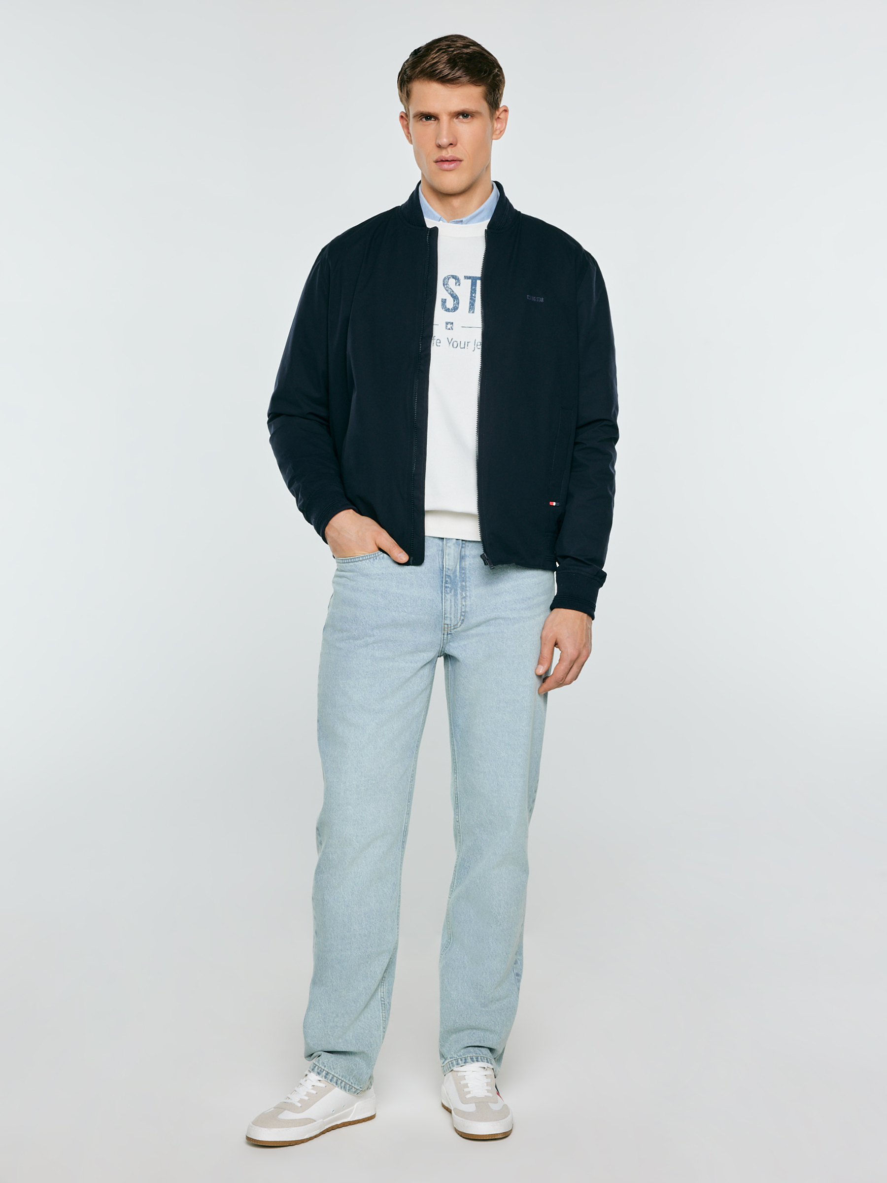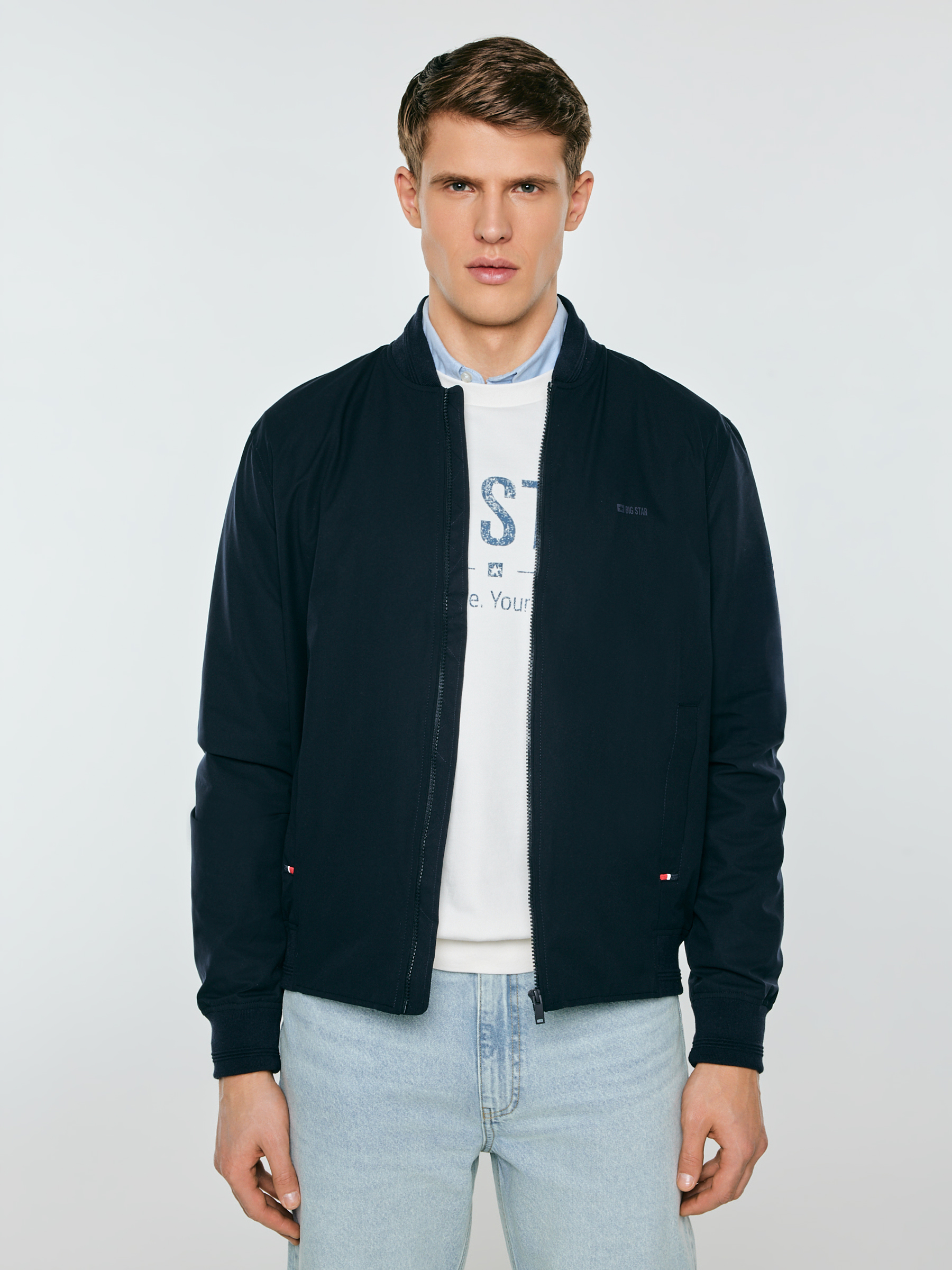 Tmavomodrá pánska vetrovka s hydrofóbnou úpravou je praktickou voľbou pre tých, ktorí oceňujú funkčnosť a moderný štýl. Tkanina s úpravou DWR spôsobuje, že kvapky vody voľne stekajú po povrchu, vďaka čomu sa bunda hodí do premenlivého počasia. Model má stojačik, elastické lemy na manžetách aj na spodnom okraji a podšívku zvyšujúcu komfort. Kontrastné detaily jej dodávajú športový charakter. Vpredu sa nachádzajú vrecká na patentky a vo vnútri ďalšie vrecko na drobnosti. Skombinujte ju s obľúbenými džínsami a tričkom, aby ste vytvorili kompletný každodenný outfit. Hlavné vlastnosti produktu: