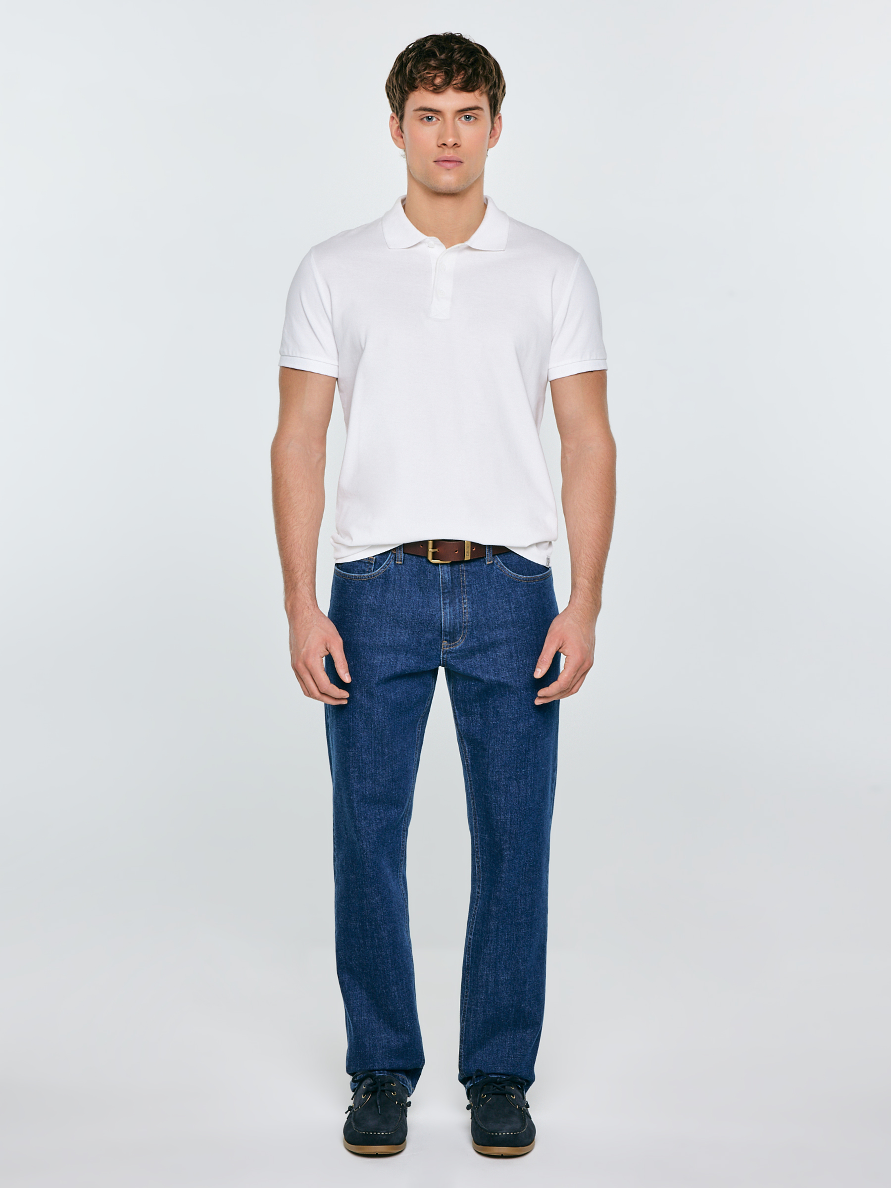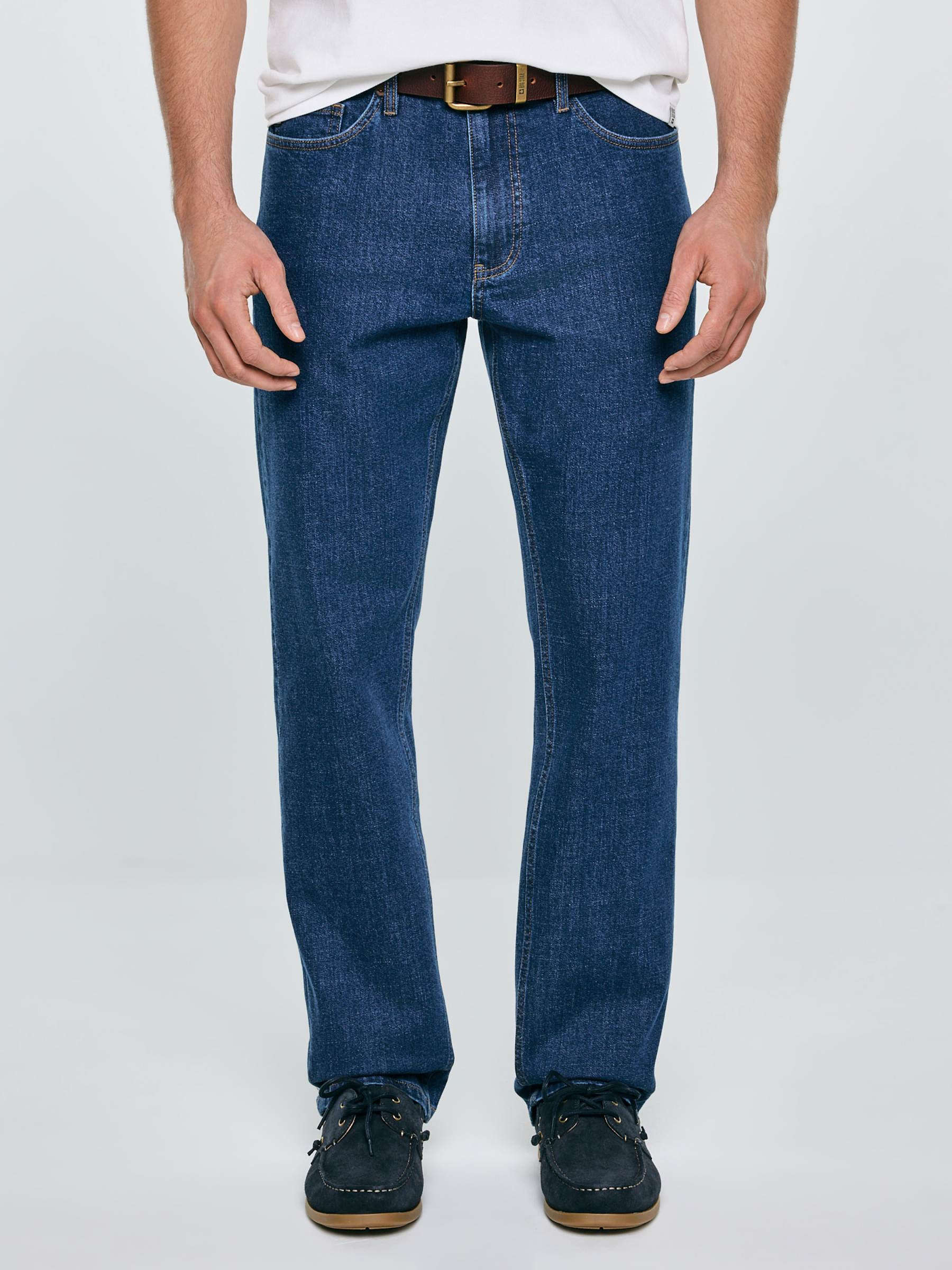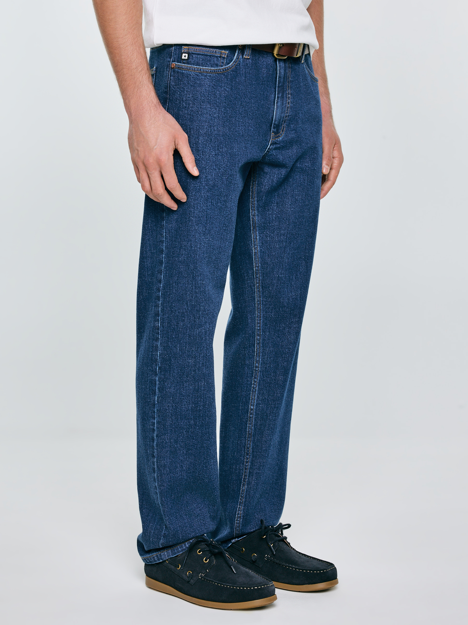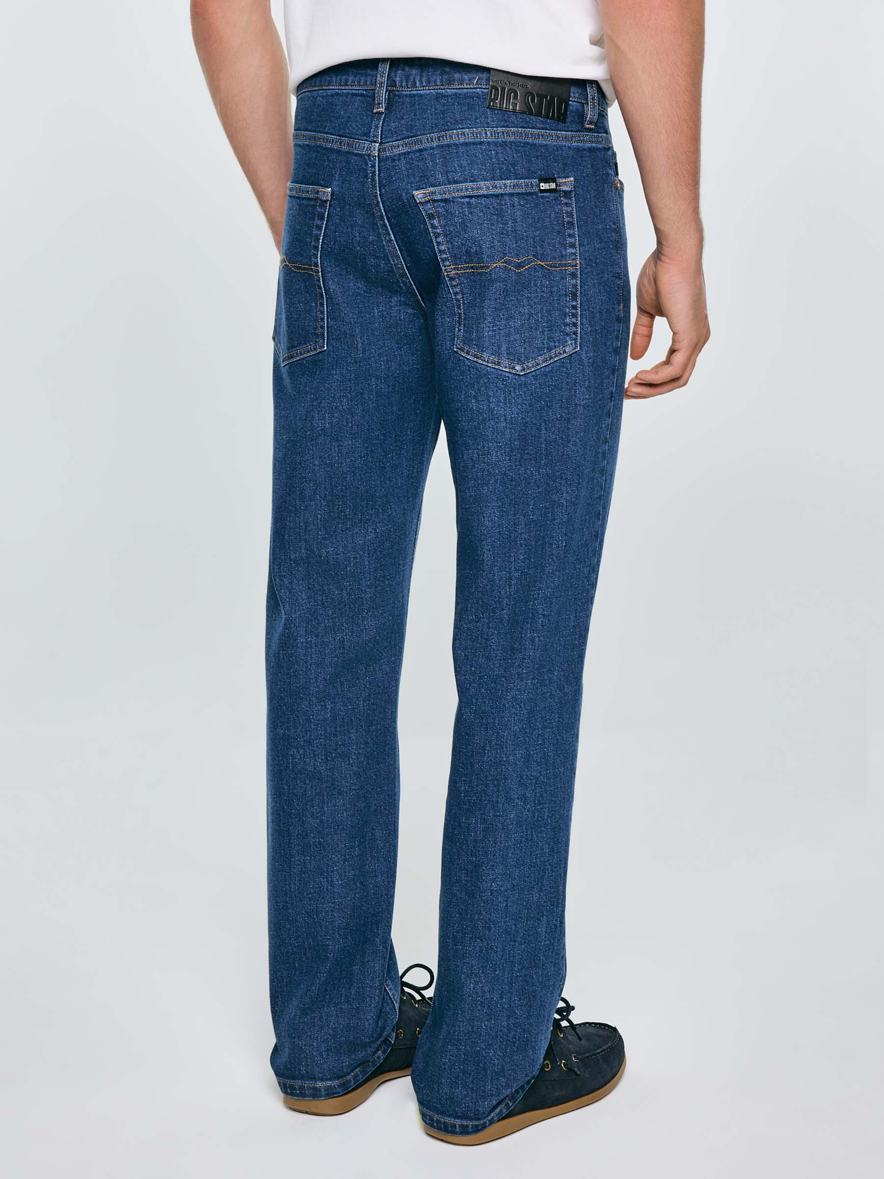 Pánske nohavice rovného strihu sú nadčasovou klasikou, ktorá spája tradičný vzhľad s moderným komfortom nosenia. Model s vysokým pásom a rovnou nohavicou zaručuje bezchybnú siluetu a maximálnu voľnosť pohybu pri každodenných aktivitách. Vyhotovenie zo stredne hrubého denimu s prímesou elastanu zabezpečuje pružnosť materiálu a dokonalé prispôsobenie pohybu tela. Tmavé, klasické pranie v odtieni indigo s jemnými kontrastmi pri švoch dodáva nohaviciam elegantný a zároveň autentický charakter. Hlavné vlastnosti produktu: