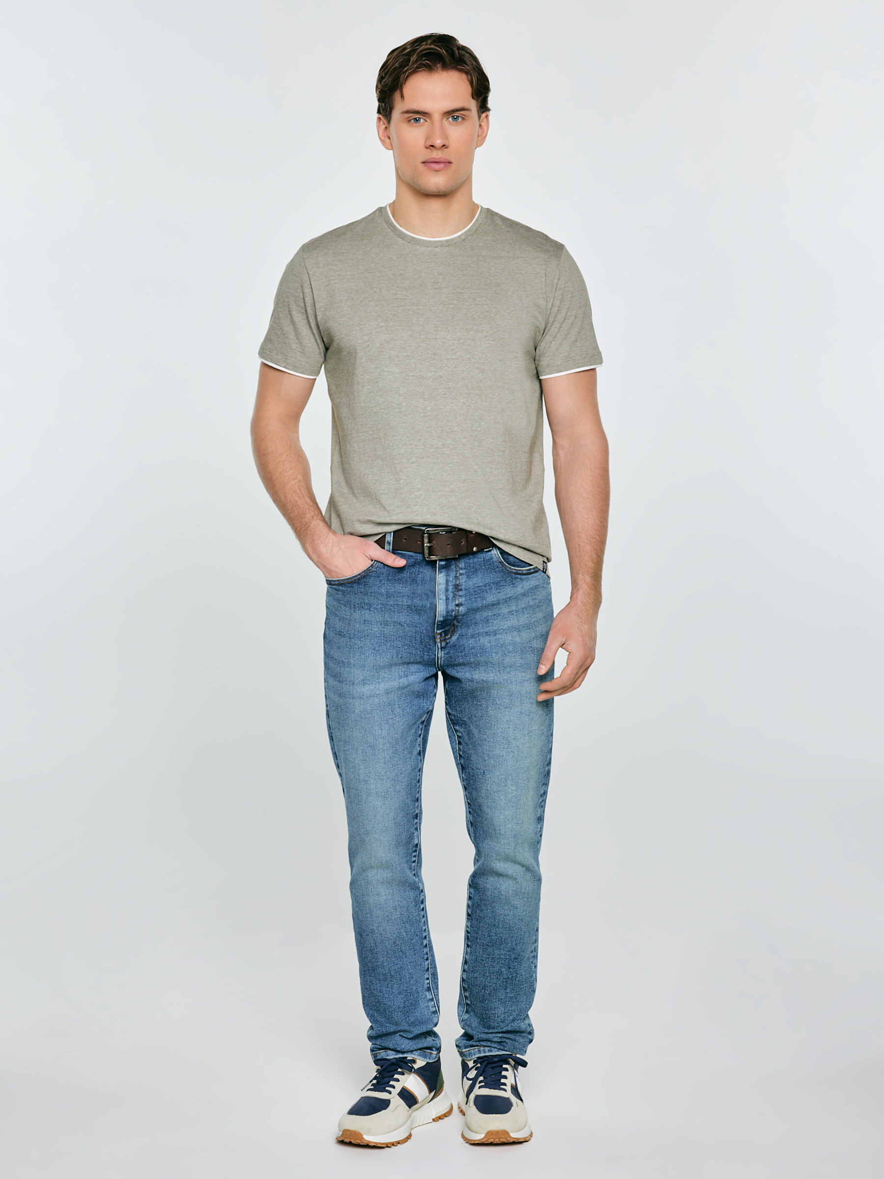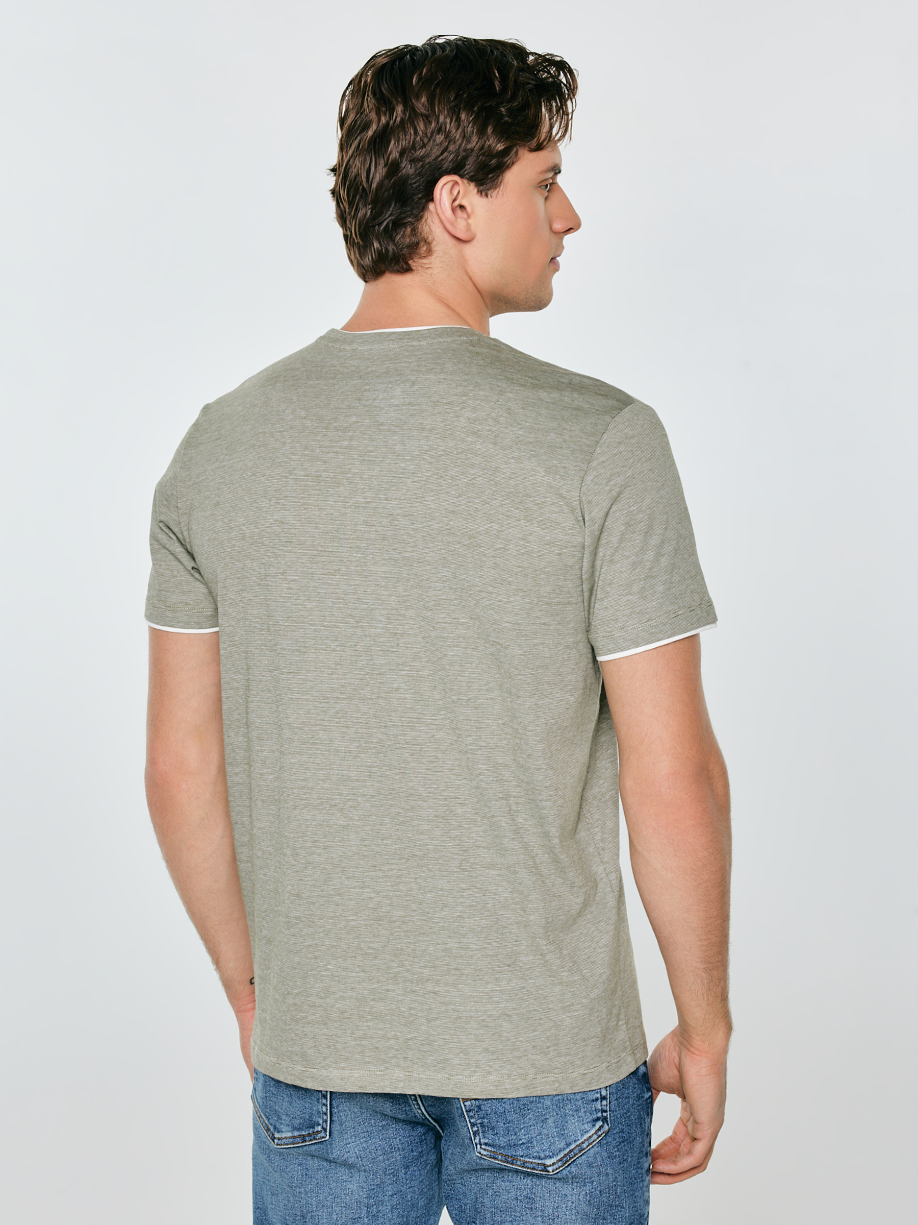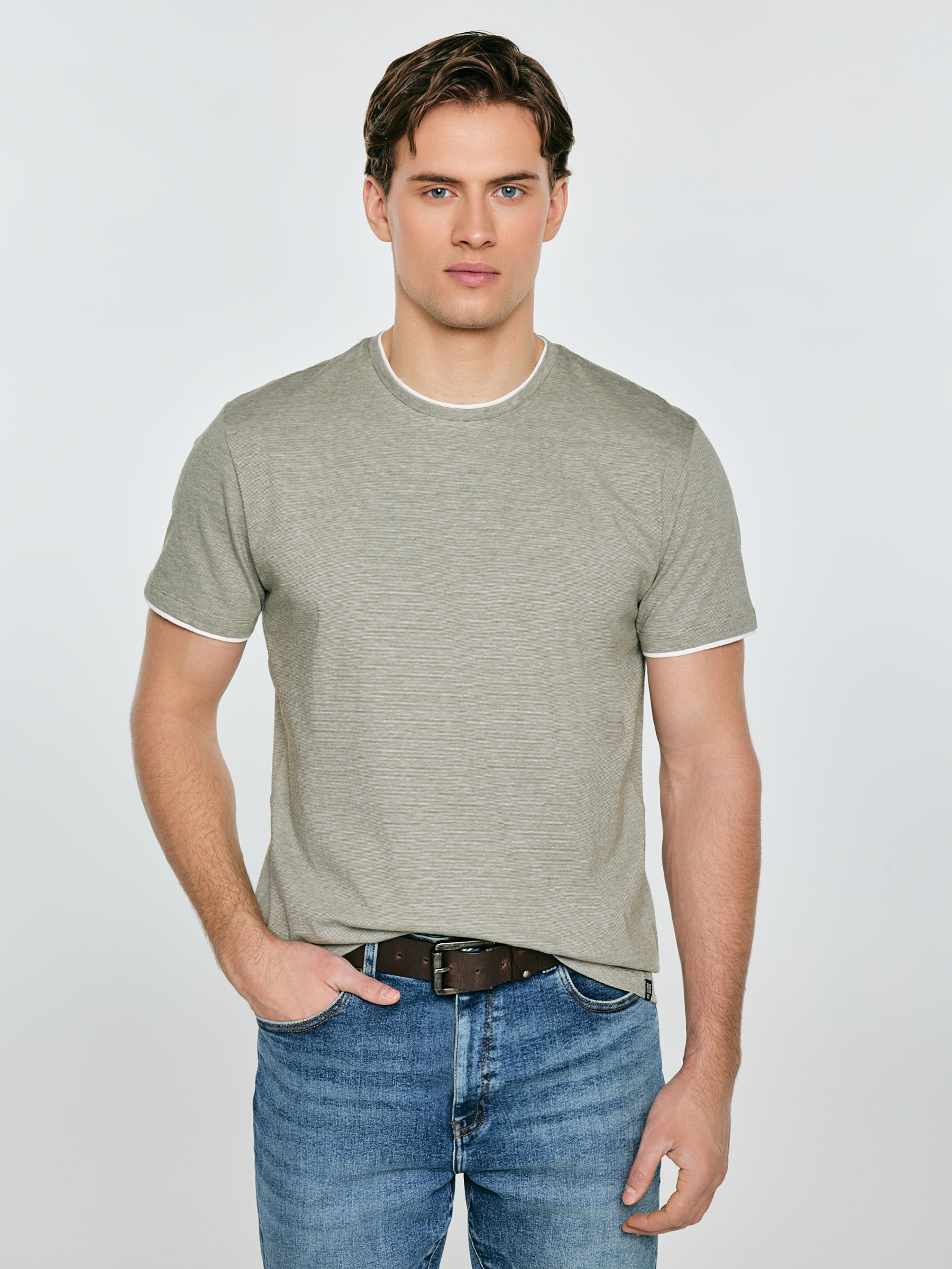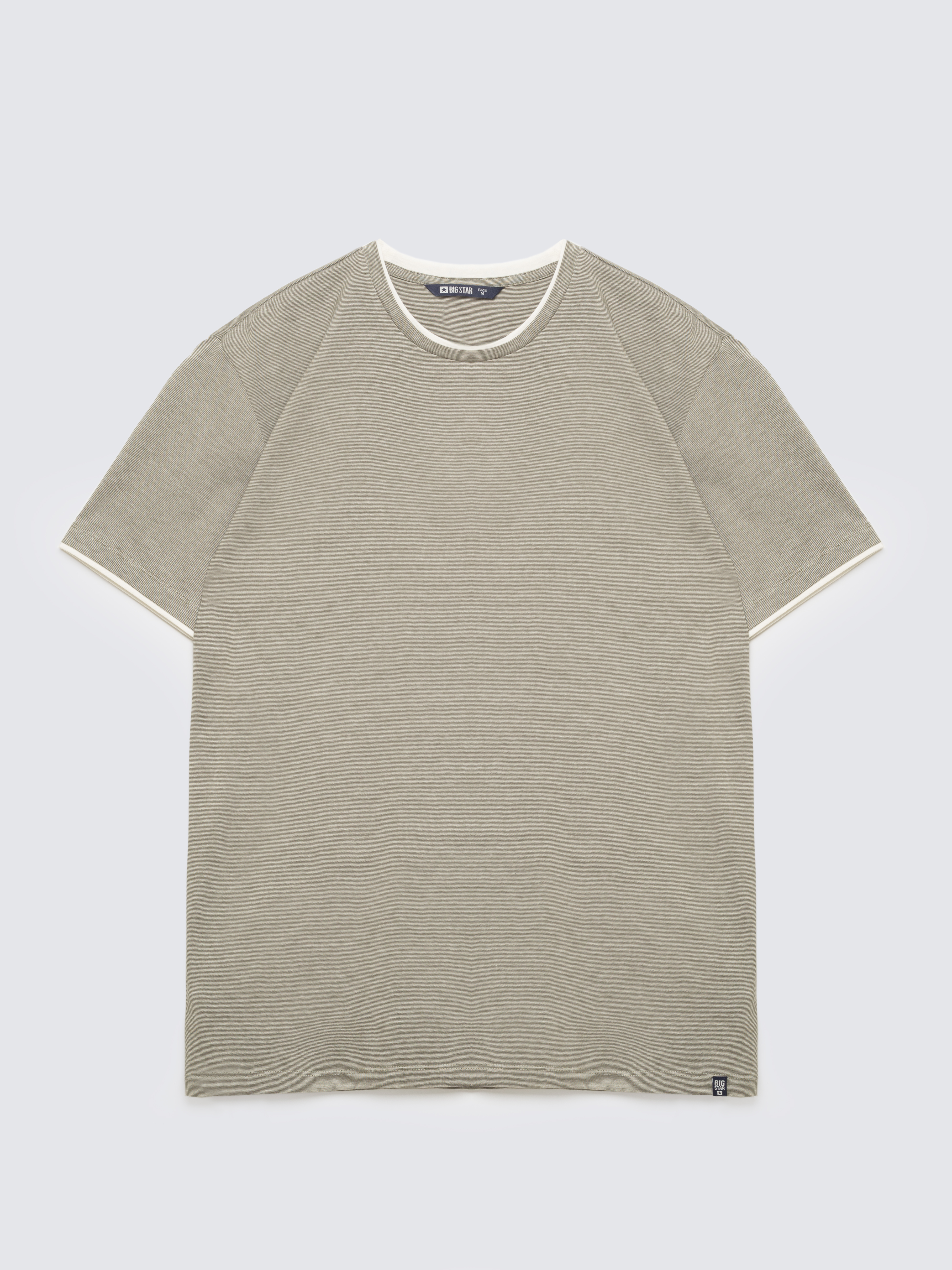 Jednoduchosť, ktorá funguje v každom outfite. Toto pánske tričko v khaki farbe je univerzálnym základom na každý deň a vyniká jemnými detailmi. Na dotyk príjemný úplet pekne sedí na postave a poskytuje komfort počas celého dňa. Jemné prúžky dodávajú celku ľahký, moderný charakter a kontrastné biele lemovanie výstrihu a rukávov priťahuje pozornosť a zjednocuje formu. Rovný strih spôsobuje, že tričko vyzerá skvele samostatne aj pod mikinou či bundou. Na spodnom okraji je umiestnená estetická nášivka s logom značky, ktorá decentne dotvára celok. Ideálny model na každý deň, do práce v uvoľnenom štýle aj na víkendové aktivity. Skombinujte ho s džínsami, chinosami alebo šortkami a vytvorte pohodlný outfit. Hlavné vlastnosti produktu: